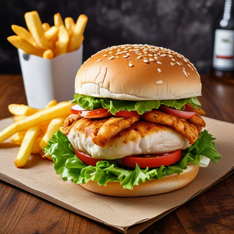 Flame-grilled chicken breast with tomatoes, mayonnaise & lettuce in a fresh toasted pitta