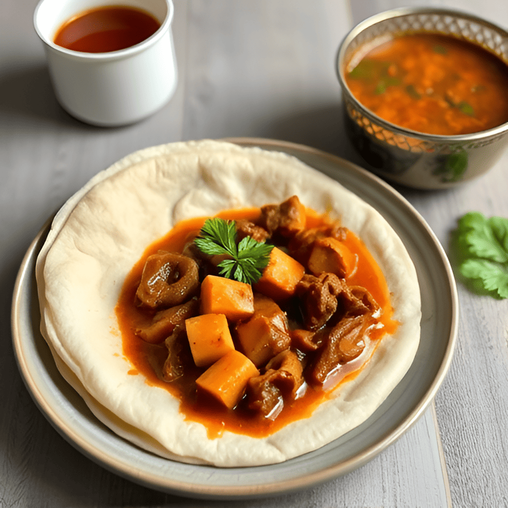 2 Poppadum, Red onion, Mango, 2 onion Bhaji, 2 Seekh Kebabs, Chicken Rogan Josh, Lamb Korma, Pilau rice, Nan